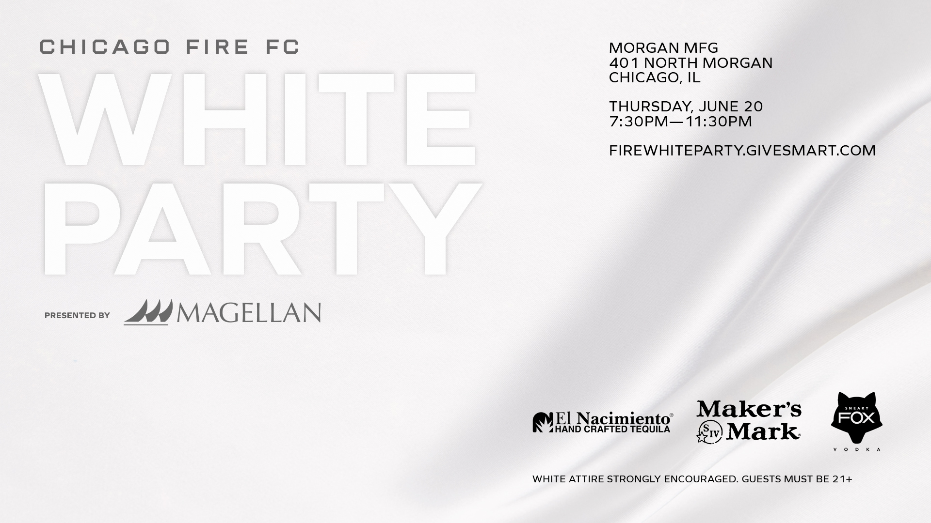 The Chicago Fire Foundation, the charitable arm of Chicago Fire FC, will host the seventh edition of the White Party, presented by Magellan Corporation, taking place on Thursday, June 20th at Morgan Manufacturing (401 N Morgan St, Chicago, IL 60642) in West Town with all proceeds supporting the Foundation.