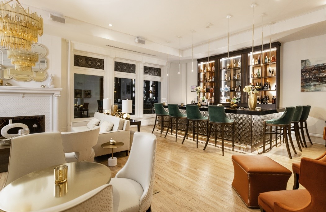 The recently renovated lounge that previously only welcomed exhibition guests now offers an upscale ambiance for a night out in Old Town. With wall-to-wall windows, romantic emerald and gold tones, dim lighting and cozy seating, the modern design beautifully contrasts with the historic building’s 19th century architecture, making the Lighthouse Lounge a quaint and elegant space to grab a glass of wine after work or catch up with friends.