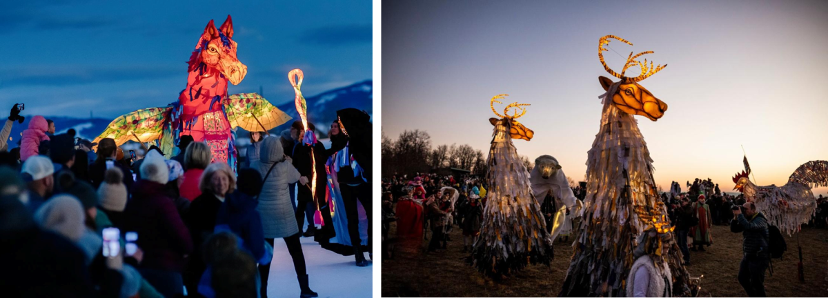 Look for a room full of giant lantern puppets created in the pre-festival workshop with Andrew Kim of Thingamugig.