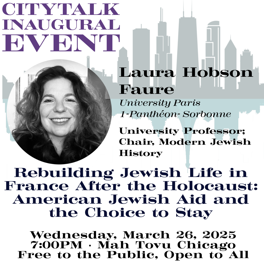 Laura Hobson Faure (University Professor; Chair, Modern Jewish History; University Paris 1-Panthéon- Sorbonne) will be joining us in the midst of her book tour, presenting our first lecture in the series: Rebuilding Jewish Life in France After the Holocaust: American Jewish Aid and the Choice to Stay —