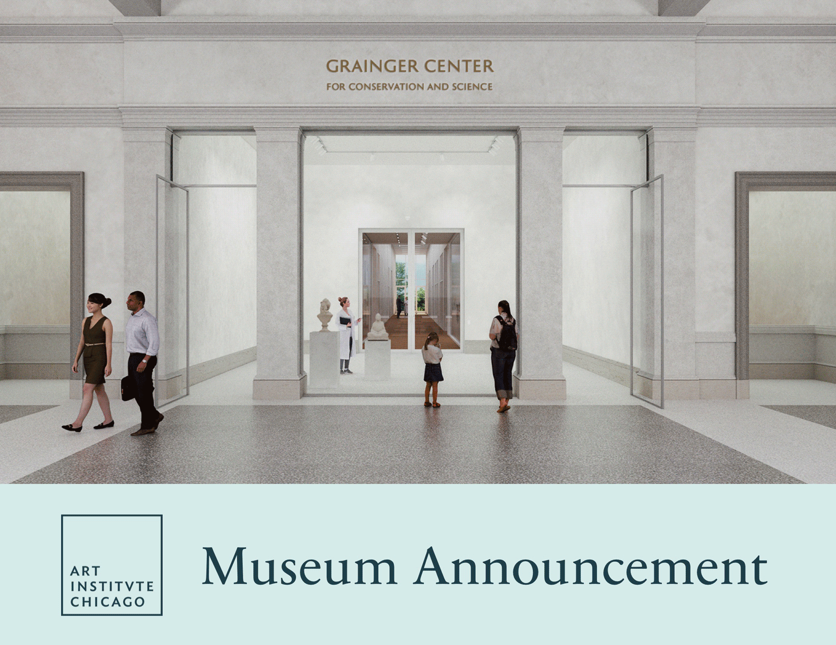 I am thrilled to share with you today plans for a major development in the Art Institute of Chicago’s campus evolution: the Grainger Center for Conservation and Science. Set to open in fall 2027, this will be the first comprehensive purpose-built conservation center in our museum’s history and is made possible by the exceptional generosity of the Grainger Foundation. The center’s state-of-the-art design and technology will match the world-class talents of our celebrated Conservation and Science team.