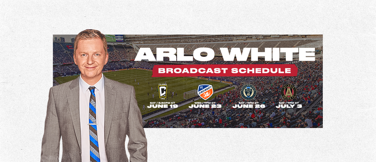 Following the June 19 broadcast, White will then call three consecutive home matches at Soldier Field: