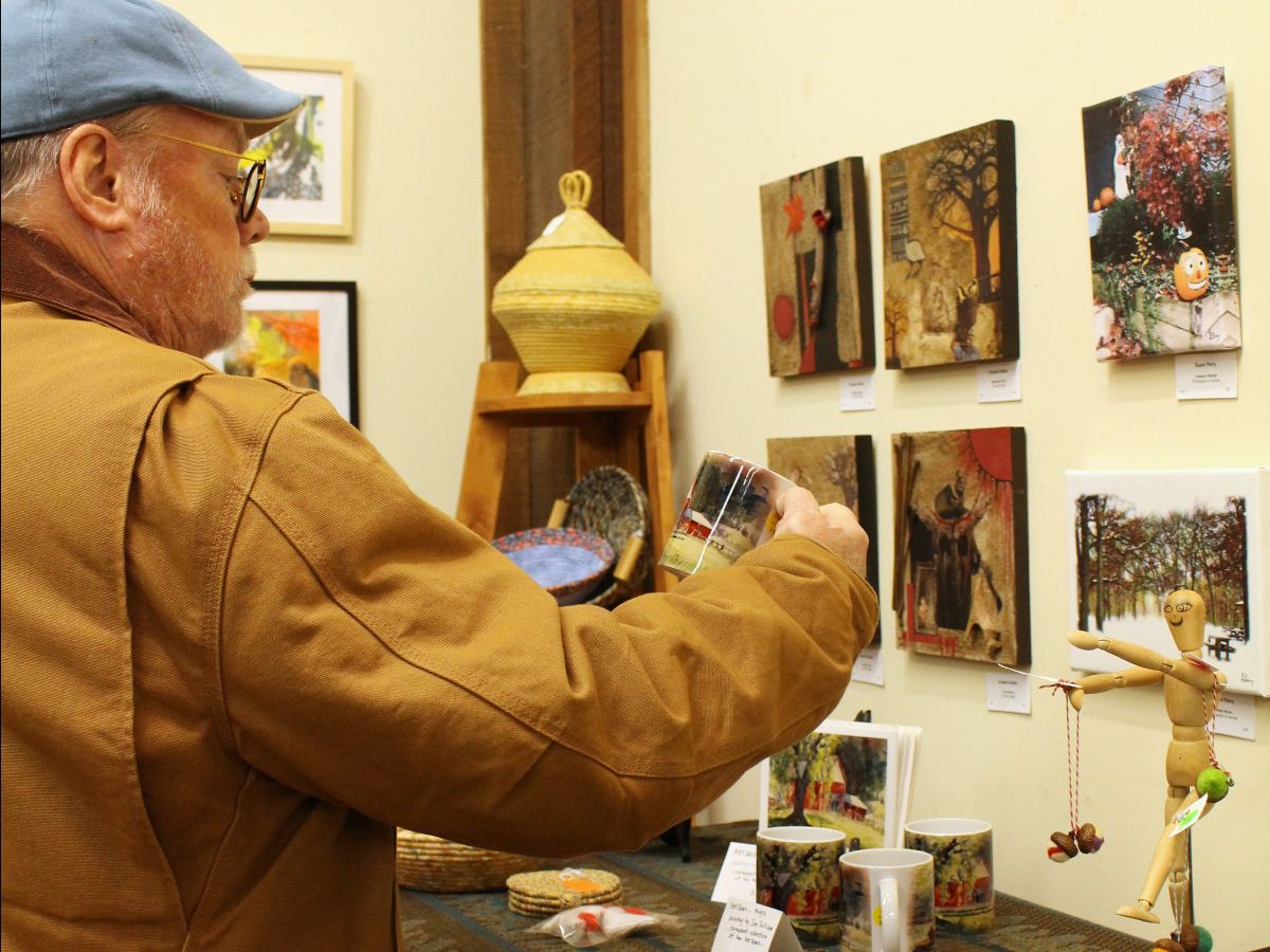 Holiday Gift Gallery Shopper perusing items created by local artists and artisans.