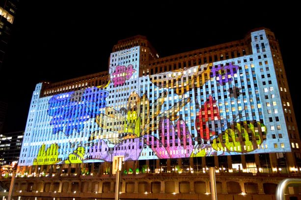 Art on theMART’s program of projections will be shown nightly at 9 and 9:30 p.m. and can best be experienced for free from the jetty section of the Chicago Riverwalk on Wacker Drive between Wells Street and Franklin Street, where accompanying audio is also available. The most recent social distancing practices (based on recommendations from the City of Chicago and the State of Illinois), must be observed by all Art on theMART visitors.