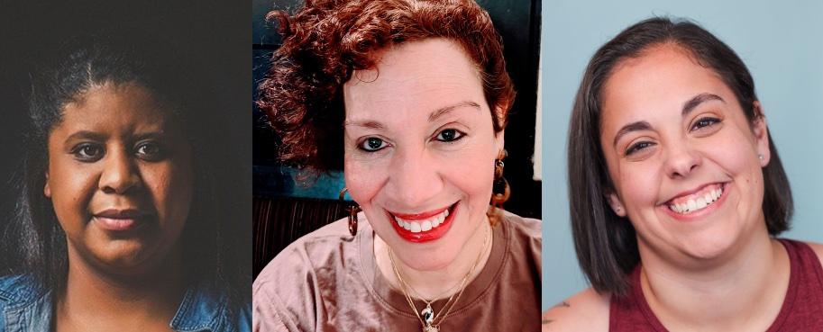 (L to R) Rachel Lynett (Fighting Words Festival playwright, Rich B*tch), Desi Moreno-Penson (Fighting Words Festival playwright, Sin Aqua) and Jillian Leff (Fighting Words Festival playwright, The Gatekeepers)