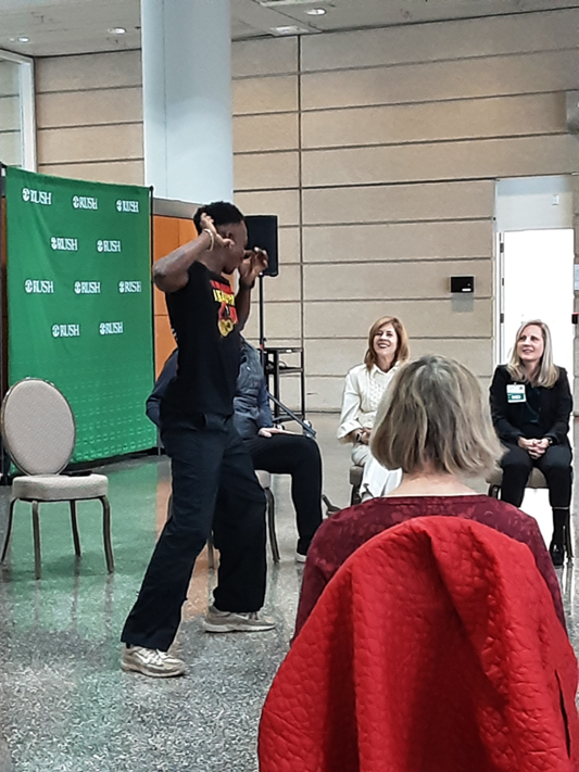 Dancer J'Kobe Wallace was on the premises and leading a Movement Workshop for the patients. Wallace is a co-dance captain and cast member of A Beautiful Noise: The Neil Diamond Musical," which runs through Nov. 30 at The Cadillac Palace Theatre. The workshop was held in collaboration with Broadway in Chicago and Rush Medical Center.