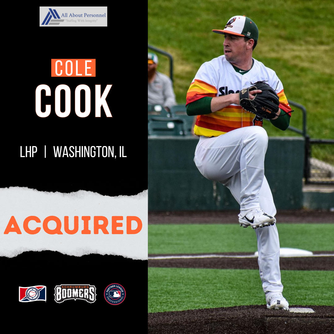 It is with great pleasure that the four-time Frontier League Champion Schaumburg Boomers announce that the team has acquired the 2023 Brian Tollberg Award Winner, left-handed pitcher Cole Cook, from the Charros de Jalisco of the Mexican League in exchange for a player to be named later.