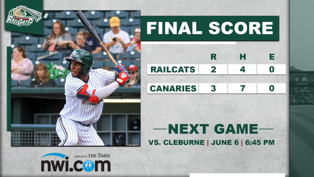 Sioux Falls, SD – The Gary SouthShore RailCats (11-12) took control in the middle innings of Monday’s series finale, but the Sioux Falls Canaries (10-13) got their best swings off late to grab a 3-2 win.