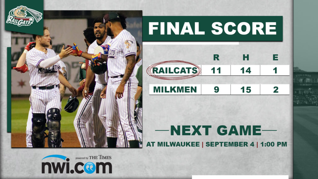 Franklin, WI – Though the Milwaukee Milkmen (56-43) had the Gary SouthShore RailCats (40-58) down to their final two outs, the visitors came through in the clutch to earn an 11-9 victory at Franklin Field.