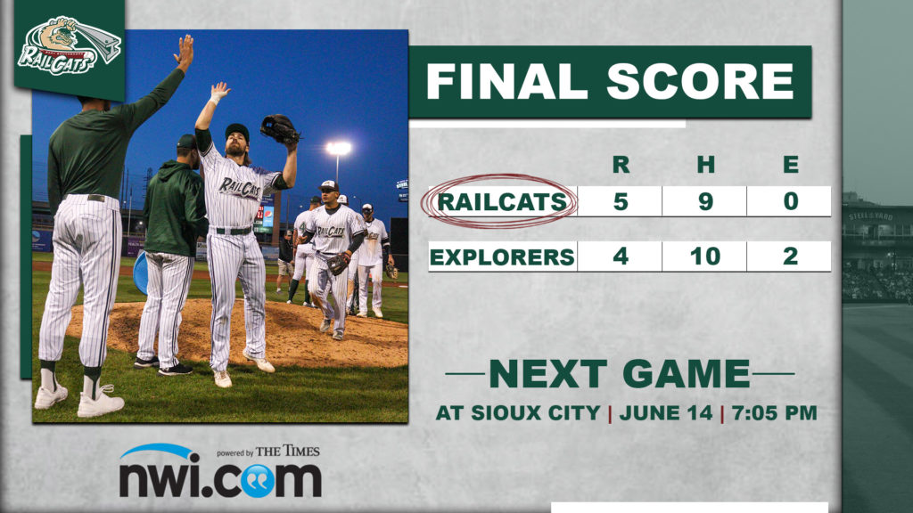 Sioux City, IA – The Gary SouthShore RailCats (13-17) offense going late in the game, and their late heroics proved successful as they defeated the Sioux City Explorers (13-16) 5-4 at MercyOne Field at Lewis and Clark Park.