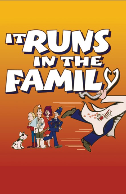 Britain's master farceur ( TWO INTO ONE, RUN FOR YOUR WIFE, and others) is at it again. Set in a hospital, IT RUNS IN THE FAMILY contains the usual assortment of farcical nuts running in and out of doors mistaking everybody for someone else, as Dr. Mortimore tries to fend off a paternity suit, an ex-wife, a punkish son and various other lunatics so that he may, at last, deliver the Ponsonby Lecture in an international conference.