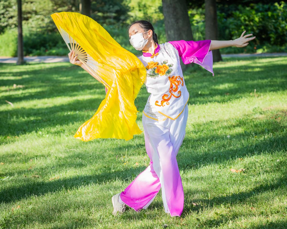 Angela Tam of Yin He Dance performs at the 2021 Scavenger Hunt during Chicago Dance Month from See Chicago Dance. Photo by Philamonjaro