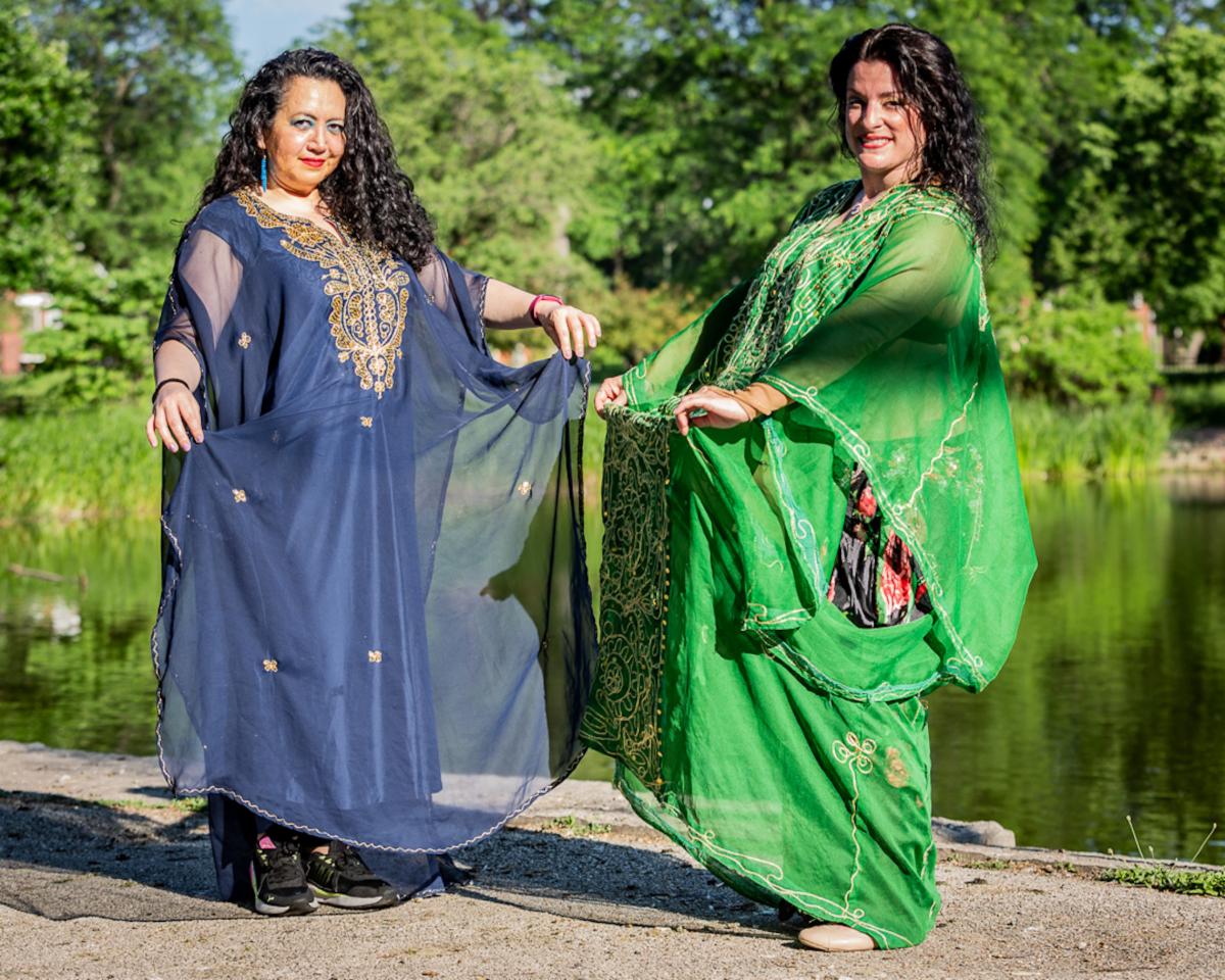 (L to R) Erika Ochoa and Phaedra Darwish of Bellydance by Phaedra perform at the 2021 Scavenger Hunt during Chicago Dance Month from See Chicago Dance. Photo by Philamonjaro