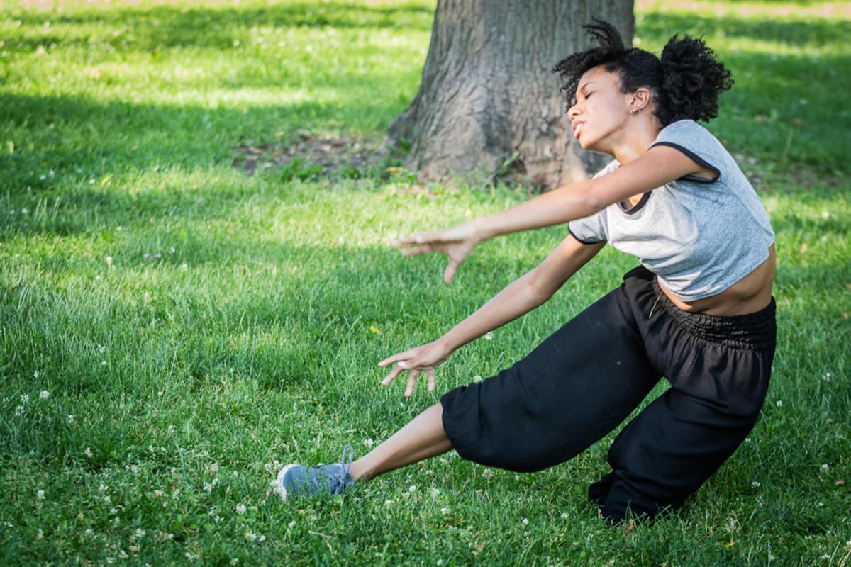 Camille Nichols of Noumenon Dance Ensemble performs at the 2021 Scavenger Hunt during Chicago Dance Month from See Chicago Dance. Photo by Philamonjaro