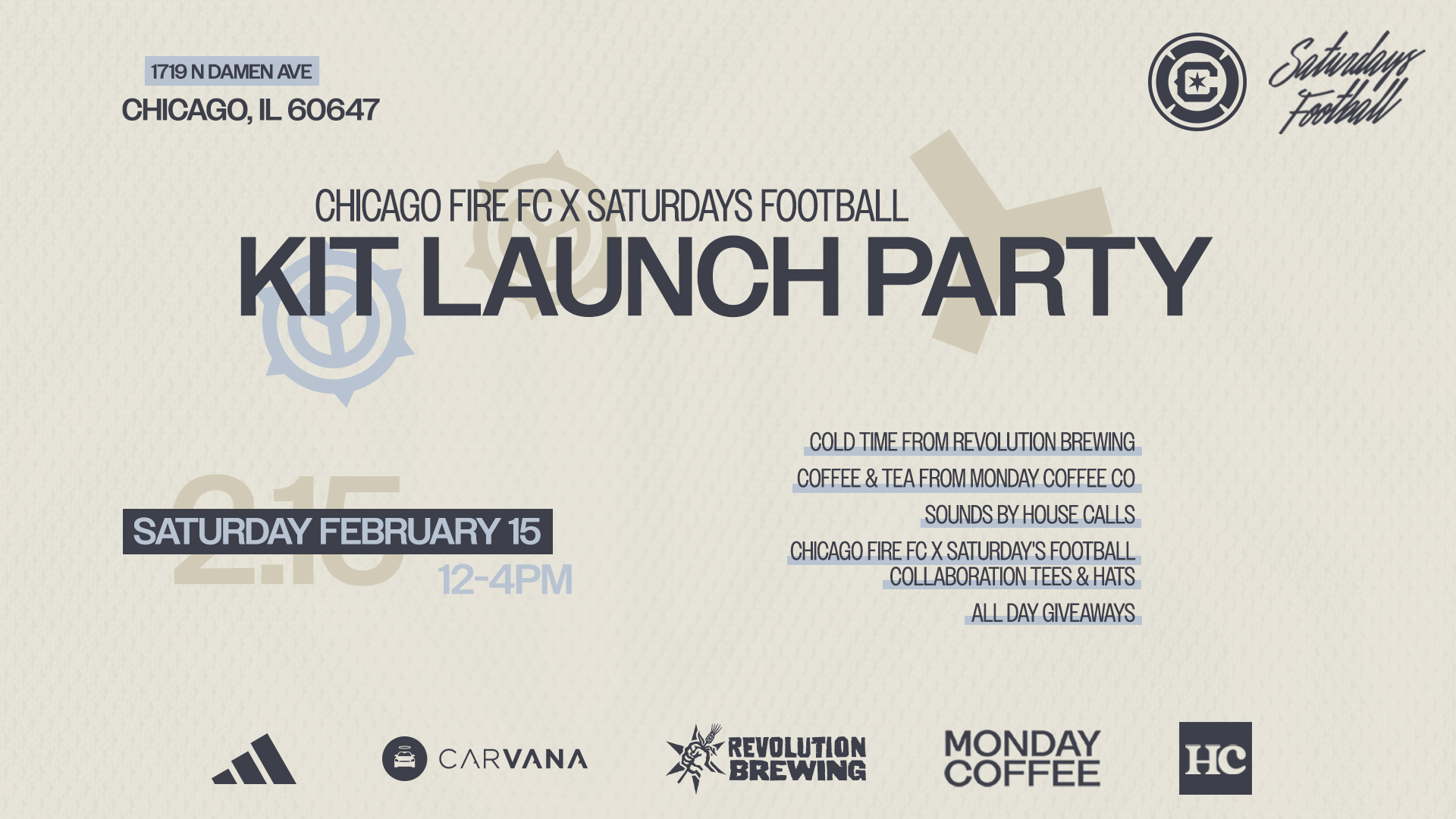Chicago Fire FC is getting ready to unveil their 2025 Secondary Kit, in partnership with MLS and Adidas, with online sales launching on Wednesday, Feb. 13. To celebrate the launch locally, the Fire are joining forces with beloved vintage soccer shop Saturdays Football in Wicker Park (1719 N. Damen Ave., Chicago, IL 60647) for a community day centered around the Club and new kit on Saturday, Feb.15.