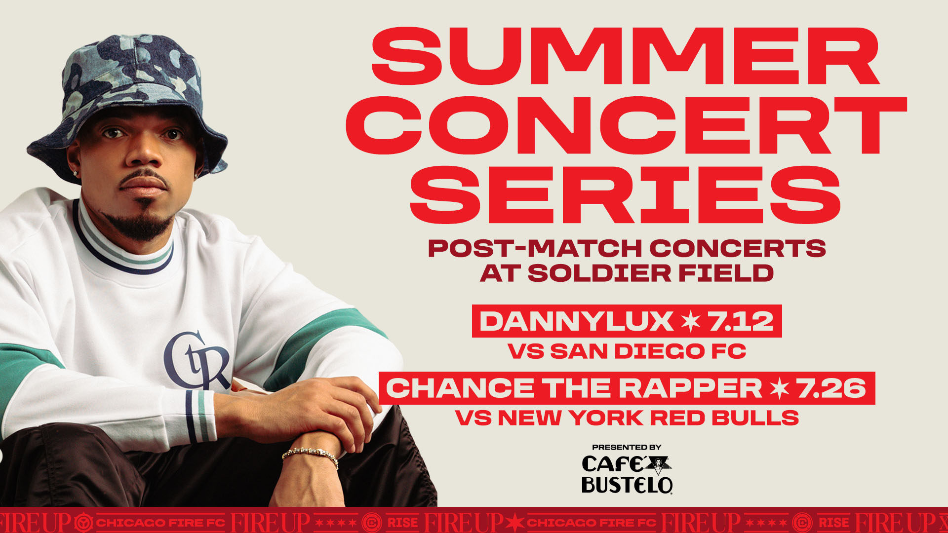 Chicago Fire FC announced superstar hip-hop artist Chance the Rapper as the second performer as part of the Club’s 2025 Summer Concert Series, presented by Café Bustelo. Chance the Rapper will hit the stage following the Sat., July 26 match-up against Eastern Conference foe New York Red Bulls. Two weeks earlier, after the Club’s first-ever match against expansion side San Diego FC on Sat., July 12, rising regional Mexican music artist DannyLux will kick-off the Summer Concert Series, presented by Café Bustelo.