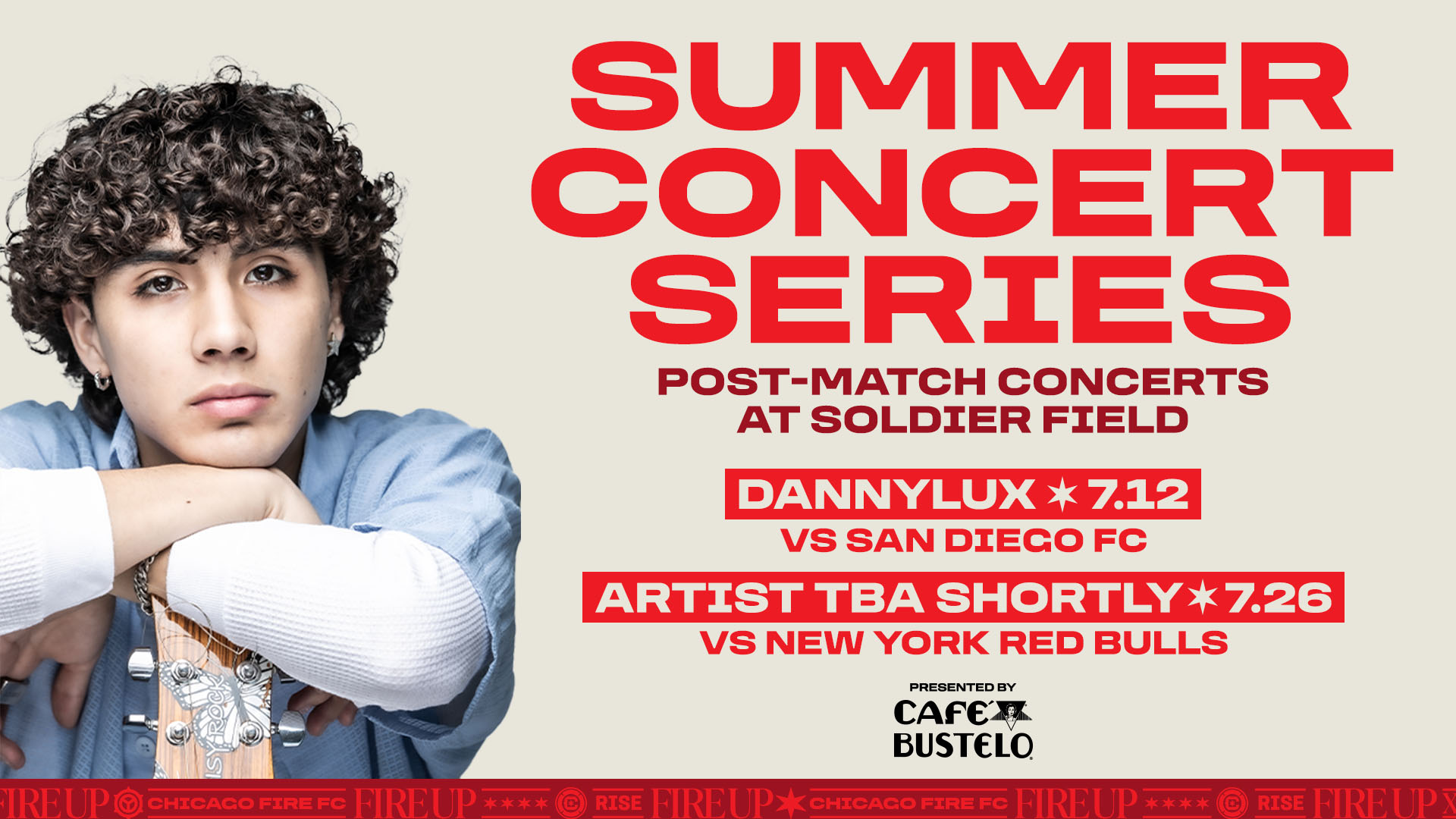 Chicago Fire FC today announced the Summer Concert Series, presented by Café Bustelo, which will feature post-match performances by top musical artists following the Club’s Sat., July 12 and Sat., July 26 home matches. DannyLux will take the stage in the Summer Concert Series, presented by Café Bustelo, following the Club’s first-ever match against expansion side San Diego FC on Sat., July 12. Additional information on the July 26 Summer Concert Series date, including the artist unveiling, will be announced in the coming weeks.
