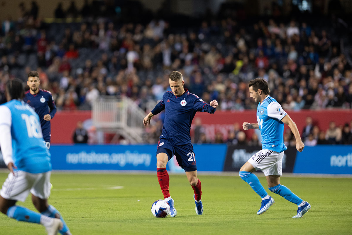 Chicago pushed forward to create several chances as a ball was sent across the goalmouth in the 68th minute where Maren Haile-Selassie met it, sending a sharp, low shot that Kristijan Kahlina got down to save. In the 73rd minute, Kacper Przybyłko won the ball on the left flank and sent it toward the box. Brian Gutiérrez flicked it, sending it toward Rafael Czichos at the near post. Czichos reacted quickly, sending the ball toward the goal but Kahlina once again made the save.