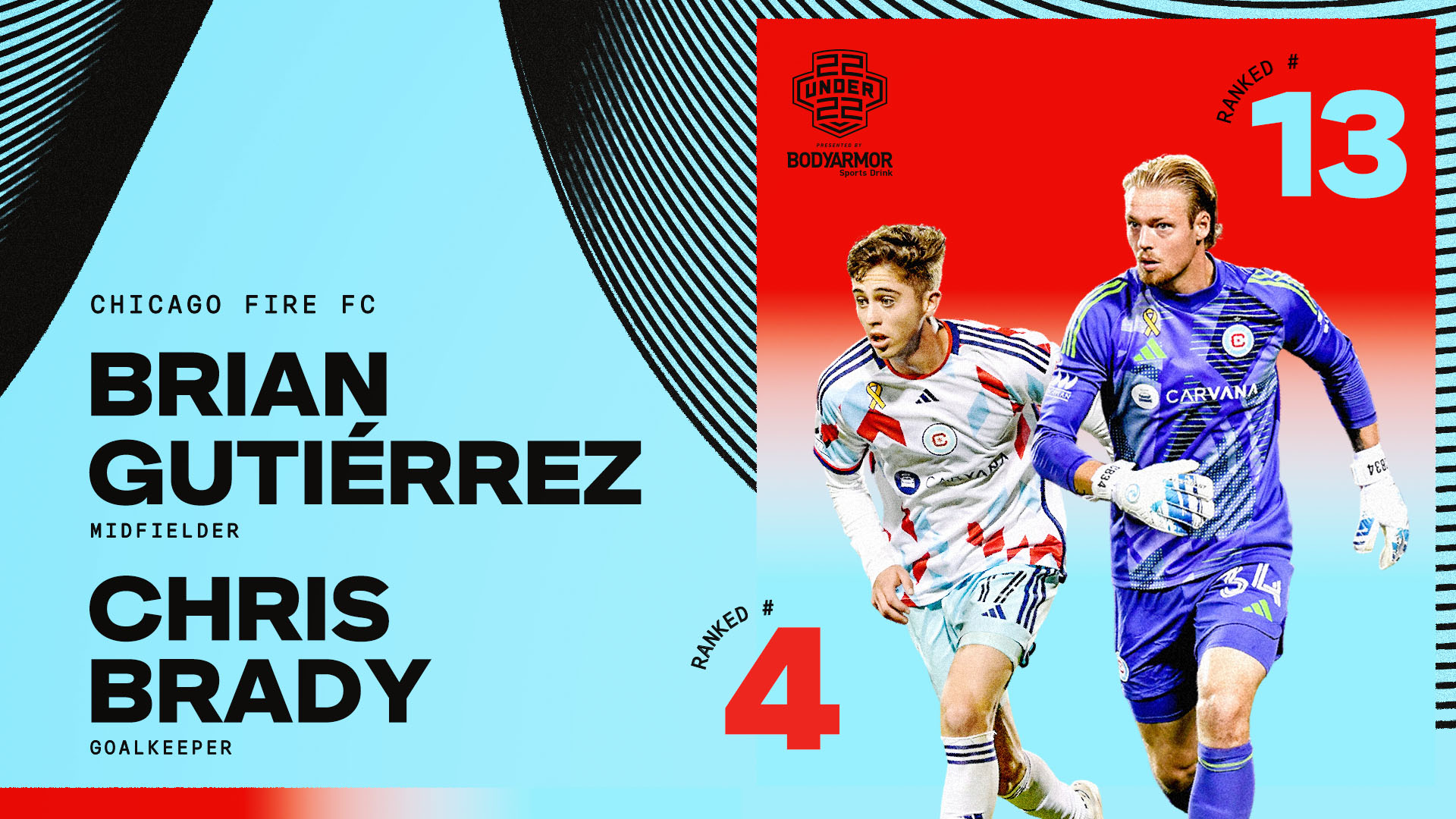 Chicago Fire FC Homegrown Players Brian Gutiérrez and Chris Brady were named to the 2024 22 Under 22 presented by BODYARMOR class, the League announced today.