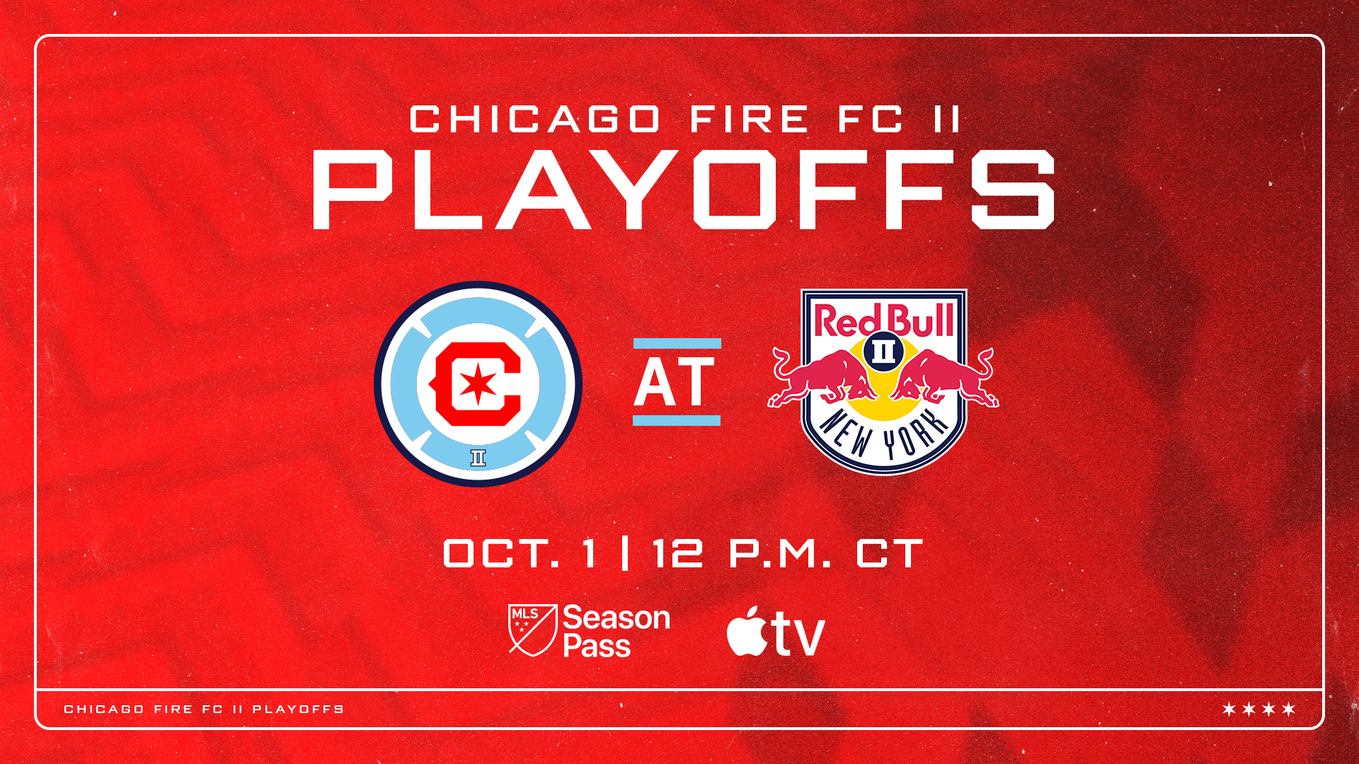 Chicago Fire FC II today announced that they will face New York Red Bulls II in the opening round of the 2023 MLS NEXT Pro playoffs at MSU Soccer Park in Montclair, N.J. Kickoff is scheduled for 12 p.m. CT on Sunday, Oct. 1. The match will be broadcast live for free on MLS Season Pass on Apple TV.