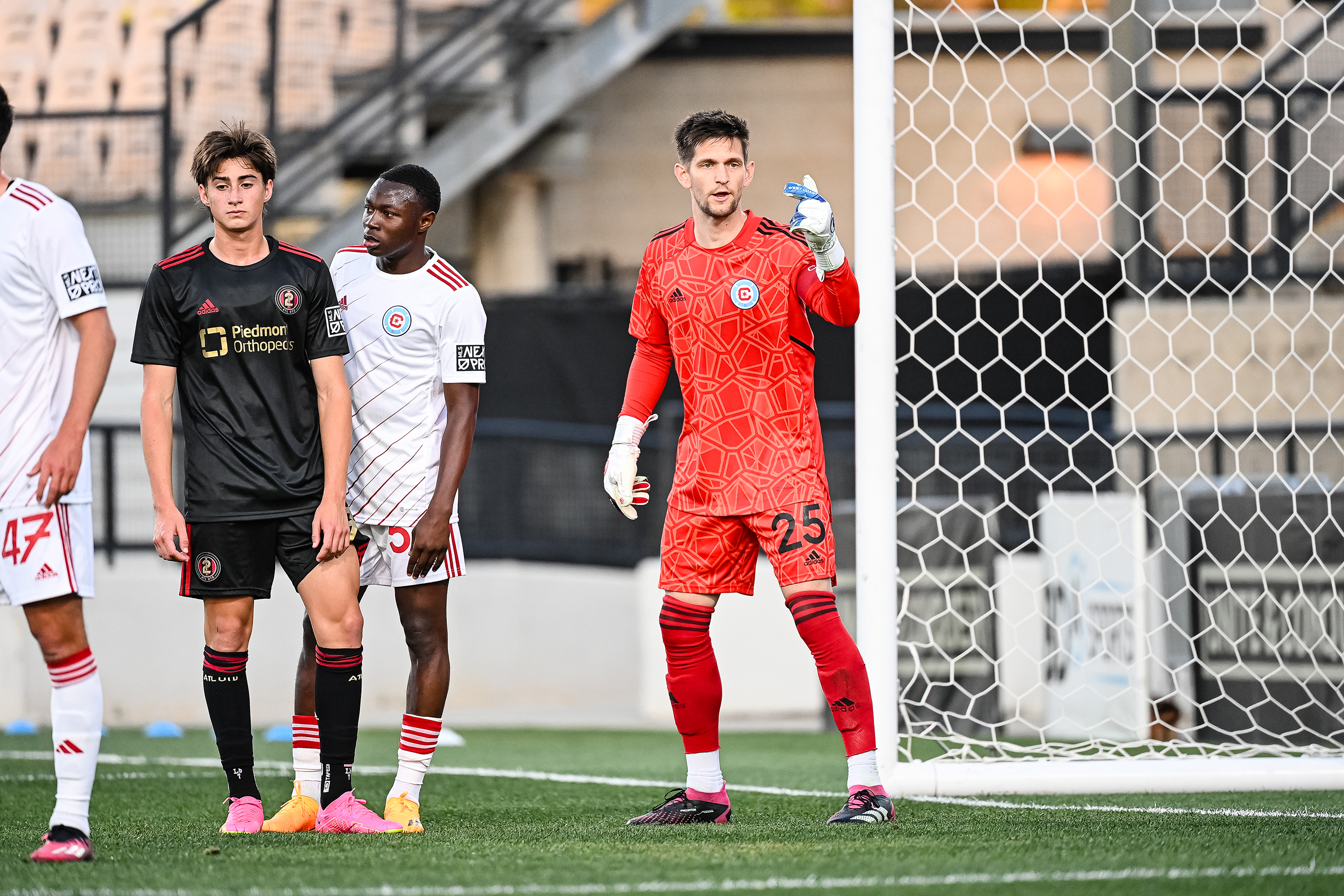The visitors answered back with some pressure of their own, but Atlanta held on throughout much of the first half. Omari Glasgow’s pace unnerved the Atlanta defense late in the half, forcing several corner kicks and shots on goal for the Fire, but ATL UTD 2 held on to the lead going into the break.