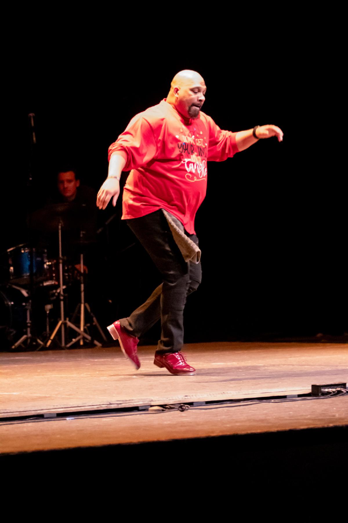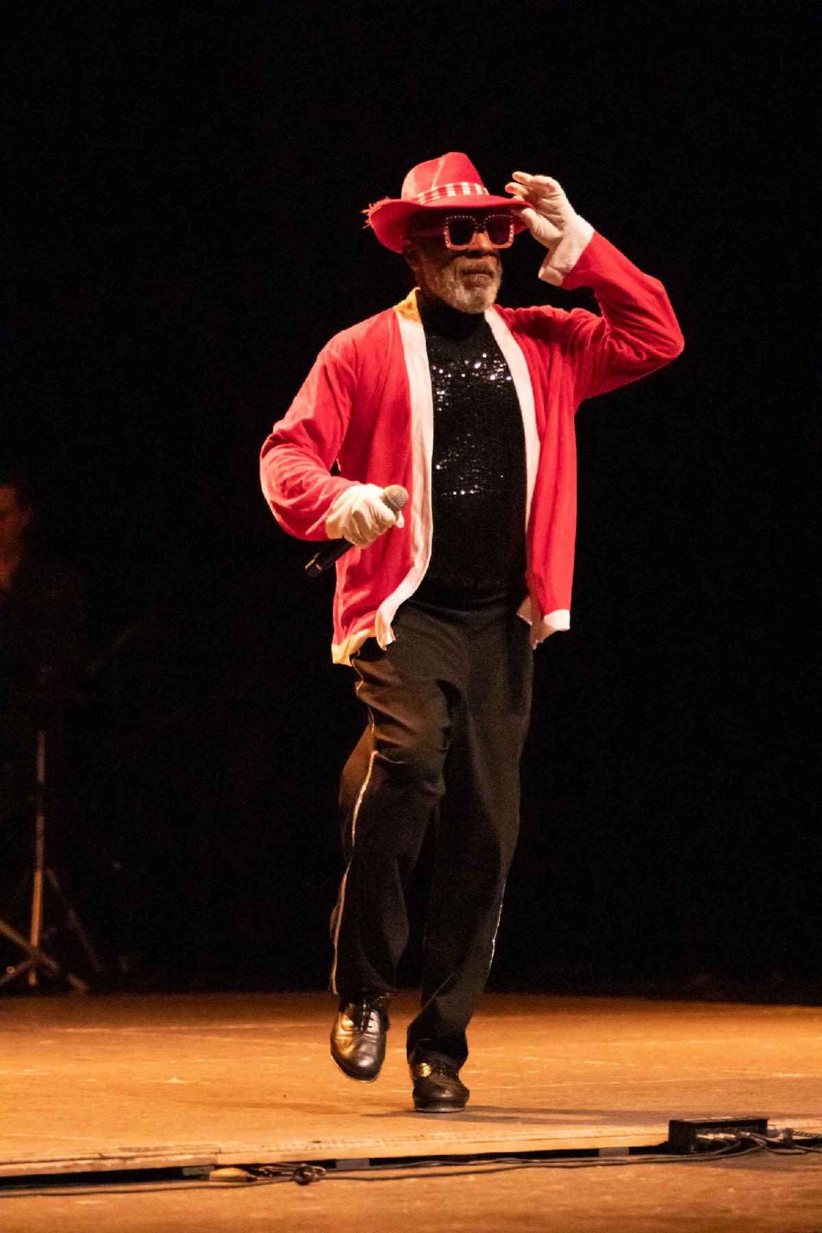 Mr. Taps performs a festive solo at Chicago Tap Allstar's Winter Wonderland, December 9, 2023, at the Harold Washington Cultural Center. Photo by Theon Reynolds