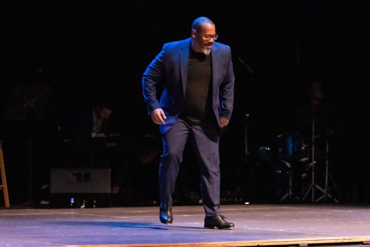 Tre Dumas performs at Chicago Tap Allstar's Winter Wonderland, December 9, 2023, at the Harold Washington Cultural Center. Photo by Theon Reynolds