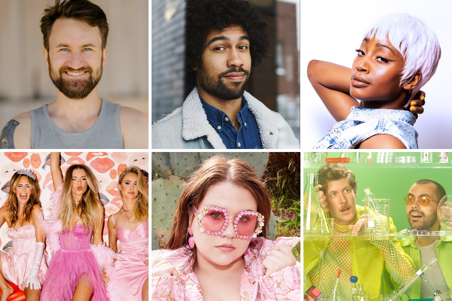 (Top Row L-R: Deric Cahill, Che Durena, Marie Faustin; Bottom Row L-R: The LADYGANG Podcast, Stanzi Potenza, The Straightiolab Podcast)