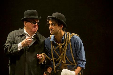 Larry Russo (left) plays Pozzo and Nima Rakhshanifar plays Lucky in Samuel Beckett’s Waiting for Godot, directed by Dennis Zacek, November 14-December 15, 2019 in the Richard Christiansen Theater at Victory Gardens.