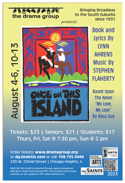 The Drama Group celebrates the close of its 91st season with ONCE ON THIS ISLAND, the rousing Calypso-flavored tale of one small girl who finds love in a world of prejudice. Directed by Aaron Reese Boseman; Musical Direction by Elliott Bell and Choreographer Florence Walker-Harris. From Broadway’s Tony Award-winning songwriting team of Lynn Ahrens and Stephen Flaherty (Ragtime and Seussical), comes the Olivier Award-winning Once on This Island. This highly original and theatrical Caribbean adaptation is based on the novel “My Love, My Love” by Rosa Guy and the popular fairy tale, The Little Mermaid, which garnered eight Tony nominations for its Broadway run, including Best Musical, Book and Score.