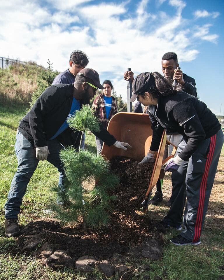 CommuniTree volunteers plant a tree with the Student Conservation Association.