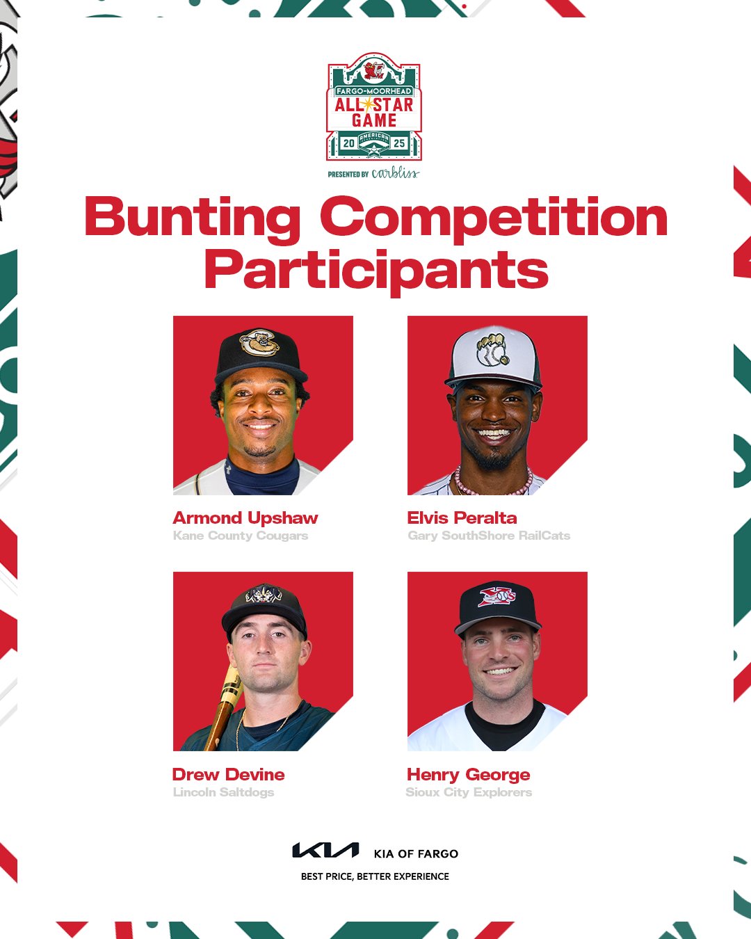 Four contestants will compete in two rounds, attempting to place bunts onto targets down each baseline. Each contestant will receive enough pitches to lay down 4 fair ball bunts. Bunts that are fair but don’t land on the target receive 0 points.
