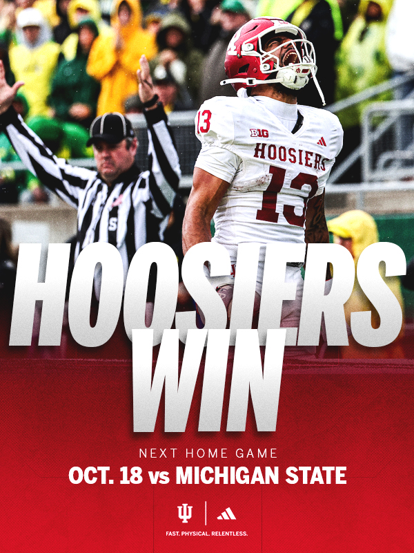 The Hoosiers earned their first-ever road win over a top-5 team, beating the Ducks 30-20. The win propelled the Hoosiers to 6-0 overall and into a first-place tie in the Big Ten at 3-0. Oregon, meanwhile, dropped its first Big Ten game since joining the conference in 2024 and slipped to 5-1 overall and 2-1 in the Big Ten.