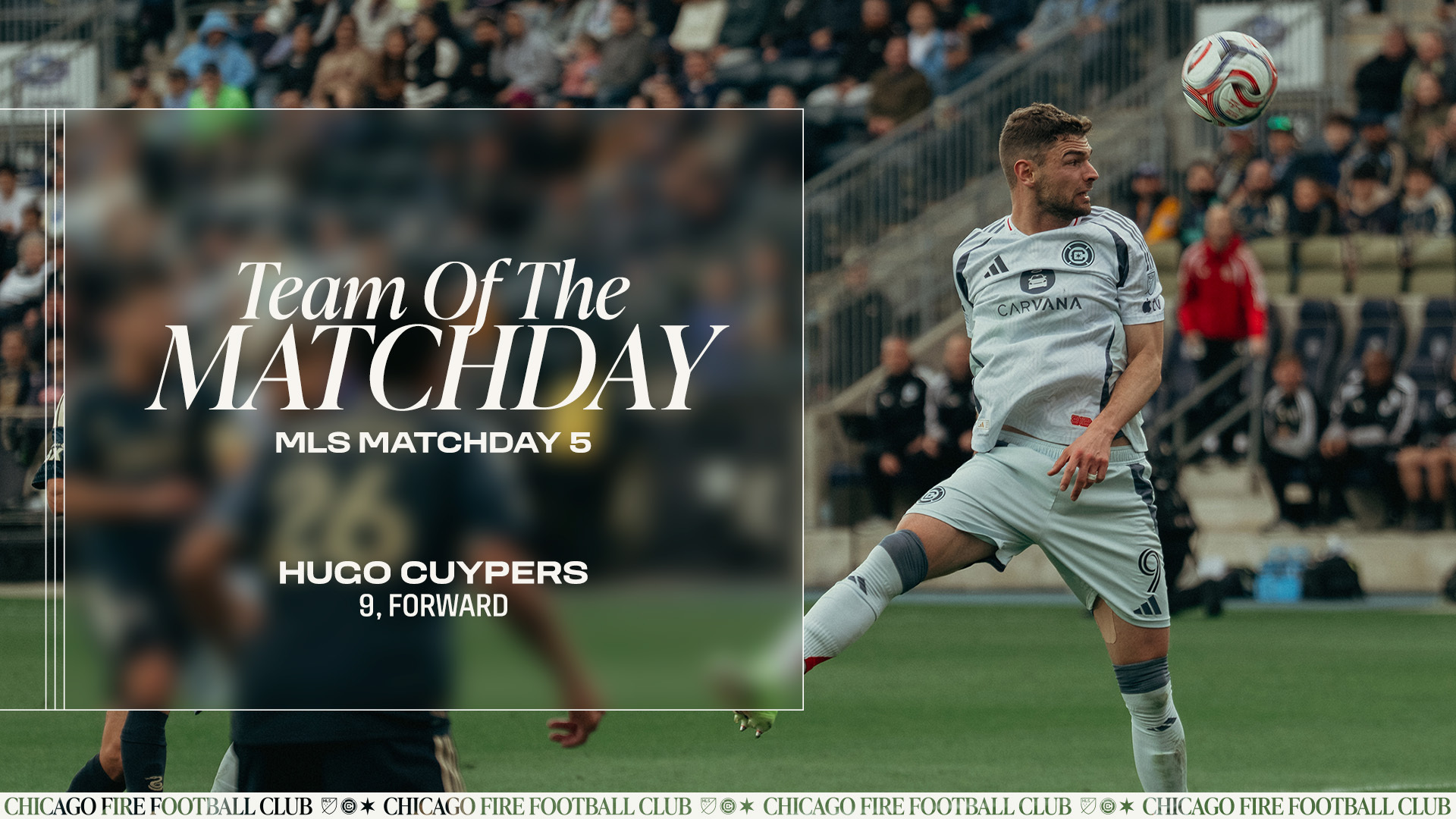 Chicago Fire FC forward Hugo Cuypers was named to the MLS Team of the Matchday for Matchday 5 following his goal-scoring performance in Saturday's 2-1 victory draw against the Philadelphia Union at Subaru Park in Chester, Pa.