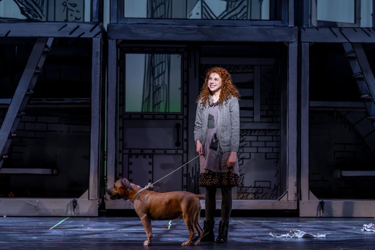 Annie opens in the dorm of the New York Municipal Orphanage with a blockbuster combo – Annie (Elin Joy Seiler) singing Maybe followed by all the orphans singing It’s the Hard Luck Life. The orphans include Molly (Audrey Bucholz), Pepper (Brielle Horwitch), Duffy (Molly Dibble), Kate (Léa Juat), Tessie (Catharina Araujo) and July (Larrah Lambo).