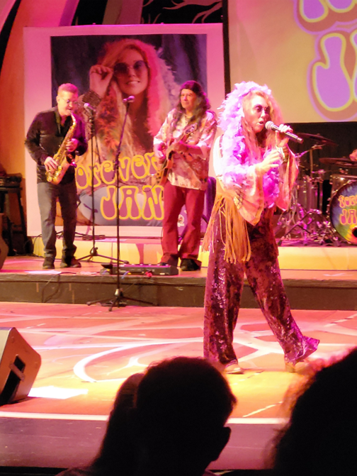 Janis had an electrifying voice, a mezzo-soprano with a raspy quality. When she belted out a song, people paid attention. Unfortunately, the tribute artist couldn’t stand still long enough to belt out a song. She seemed to think bouncing around the stage was adequate.