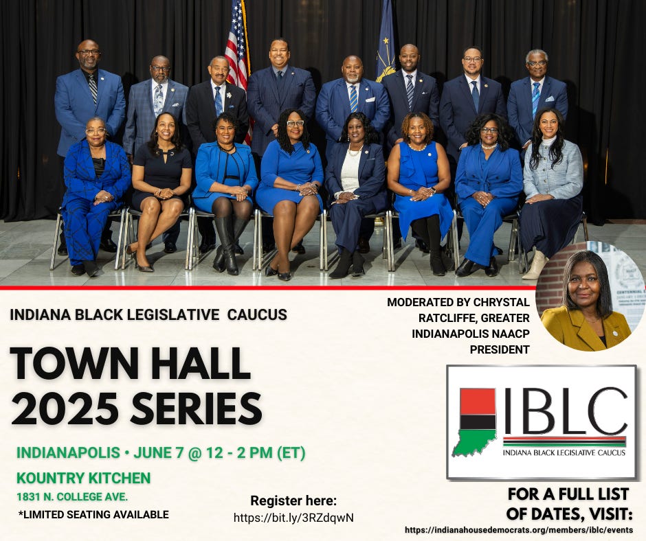 The Indiana Black Legislative Caucus (IBLC) will kick off our annual town hall series at noon June 7 at Kountry Kitchen, 1831 N. College Ave. This is a great opportunity to learn more about the Indiana General Assembly, what is happening in your community and to ask questions directly to your lawmakers.