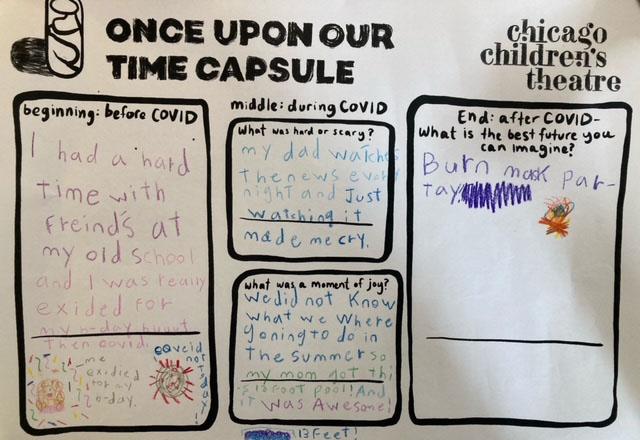 Once Upon Our Time Capsule was launched in May by Stacey Gillett and Stephanie Hodges, two professionals with backgrounds in urban innovation and community development who live in the city with their families, with lead partners The Center for Childhood Resilience at Ann & Robert H. Lurie Children’s Hospital of Chicago, Chicago Children’s Theatre, Chicago Public Library and My CHI. My Future. The project intends to engage as many as 20,000 children grades K-8 from across all 77 Chicago neighborhoods to capture their thoughts and experiences from 2020-21 through a range of mediums, including writing, drawing and video.