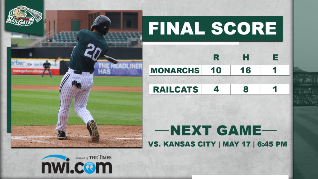 The Kansas City Monarchs got their best swings off in the final frames, scoring five runs in the final two innings to defeat the Gary SouthShore RailCats 10-4.