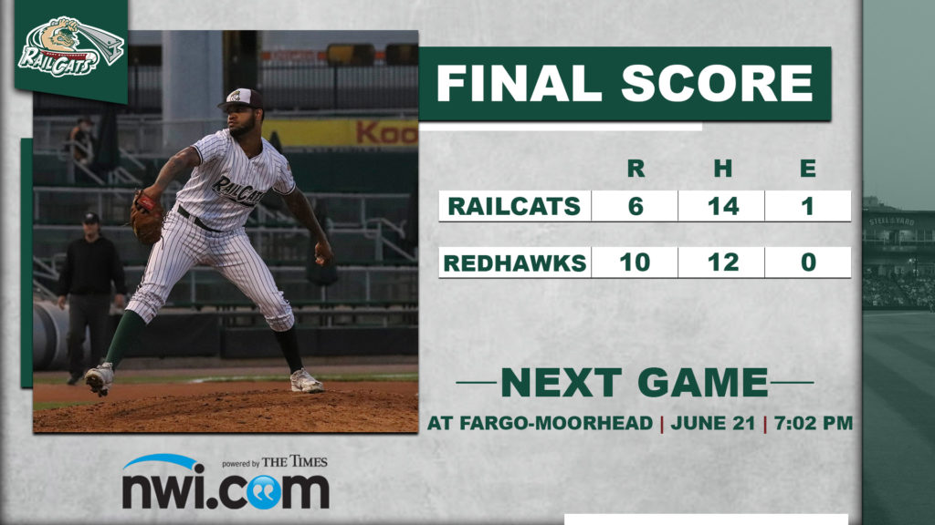 Fargo, ND – The Gary SouthShore RailCats (15-21) mounted a furious comeback attempt, scoring five runs over the final three innings, but an early deficit proved too big to erase as they dropped the series opener to the Fargo-Moorhead RedHawks (21-11) 10-6.