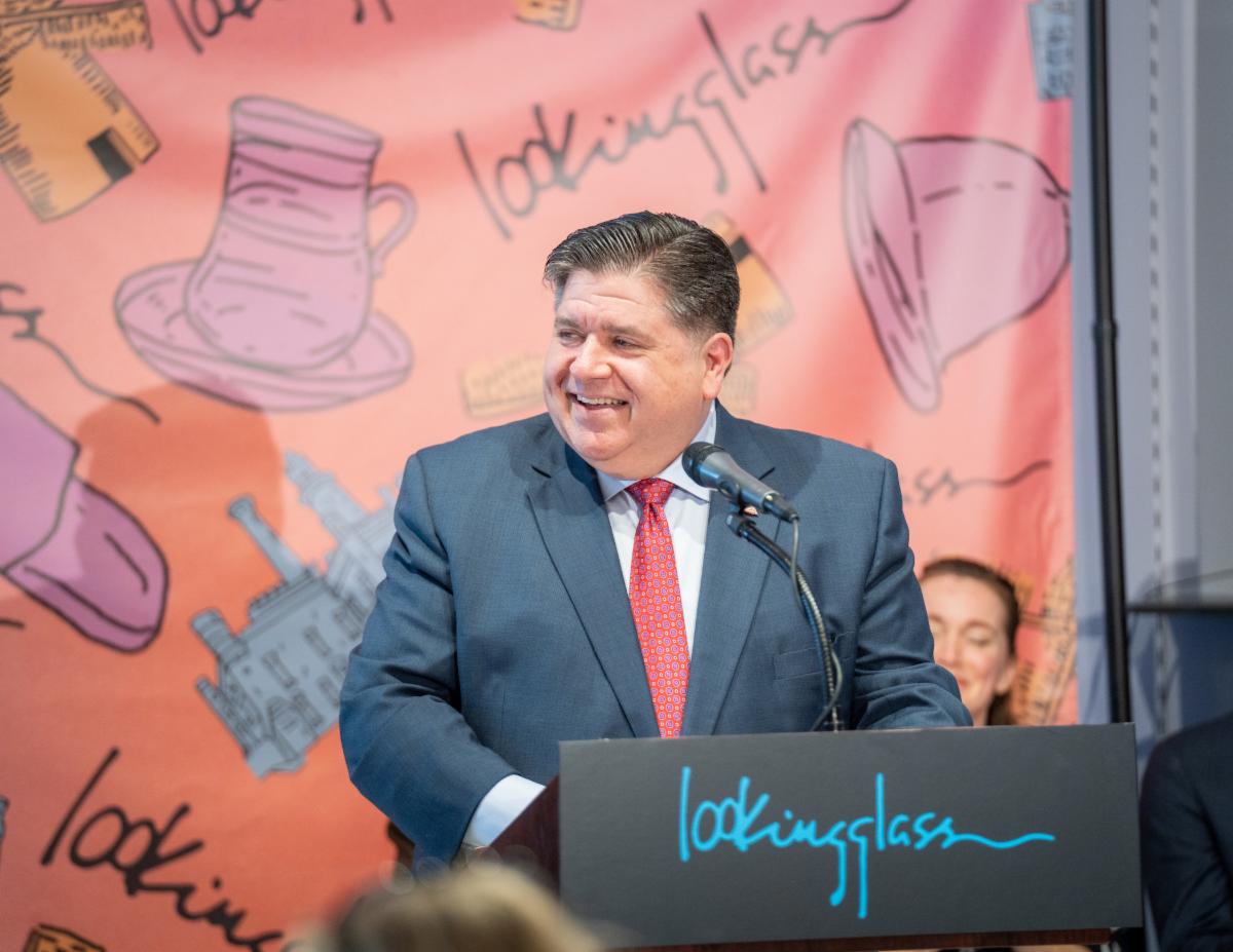 Illinois Governor JB Pritzker at the ribbon cutting held by Lookingglass Theatre Company, Monday, Jan. 27 at Water Tower Water Works, 163 E Pearson St. at Michigan Ave. Photo by In the Black Photography