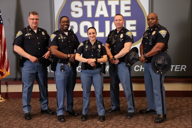 First Sergeant Doug Parcel, Lieutenant Terrance Weems, Trooper Kaylee Galvan, Captain Jeremy Kelly, Sergeant Davonne Barlow