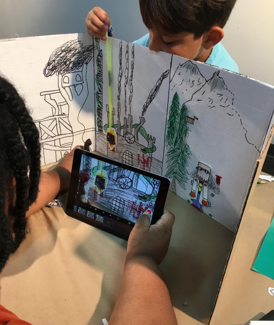 Phase I of this project included the purchase of 30 iPads, a charging station and other related supplies. This new technology was already put to the test by a group of 8 to 13-year-olds in a one-week “Lights, Camera, Action” summer camp.