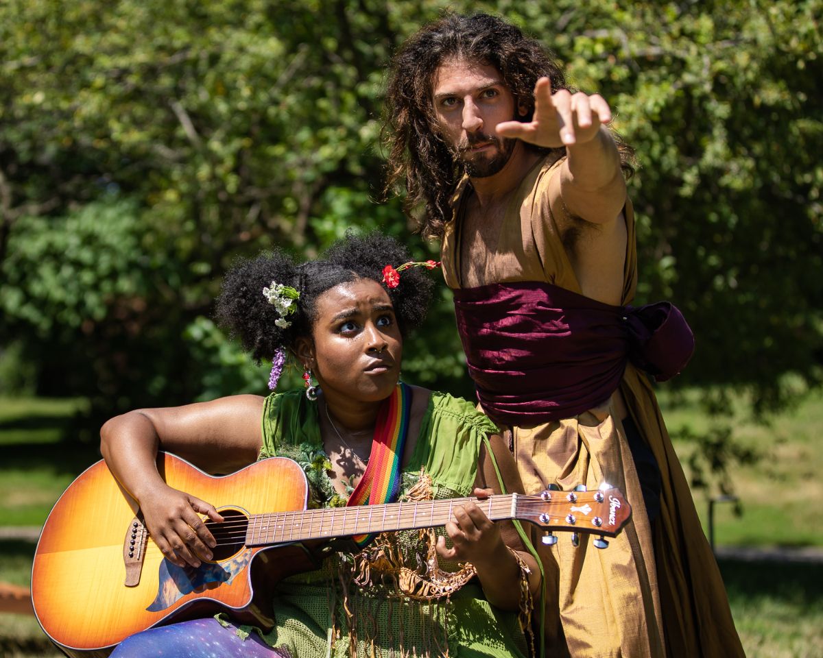 Ebby Offord (Puck) and Joshua Pennington (Oberon) in Midsommer Flight's 2022.A Midsummer Night's Dream. Photo by Steven Townshend, Distant Era.