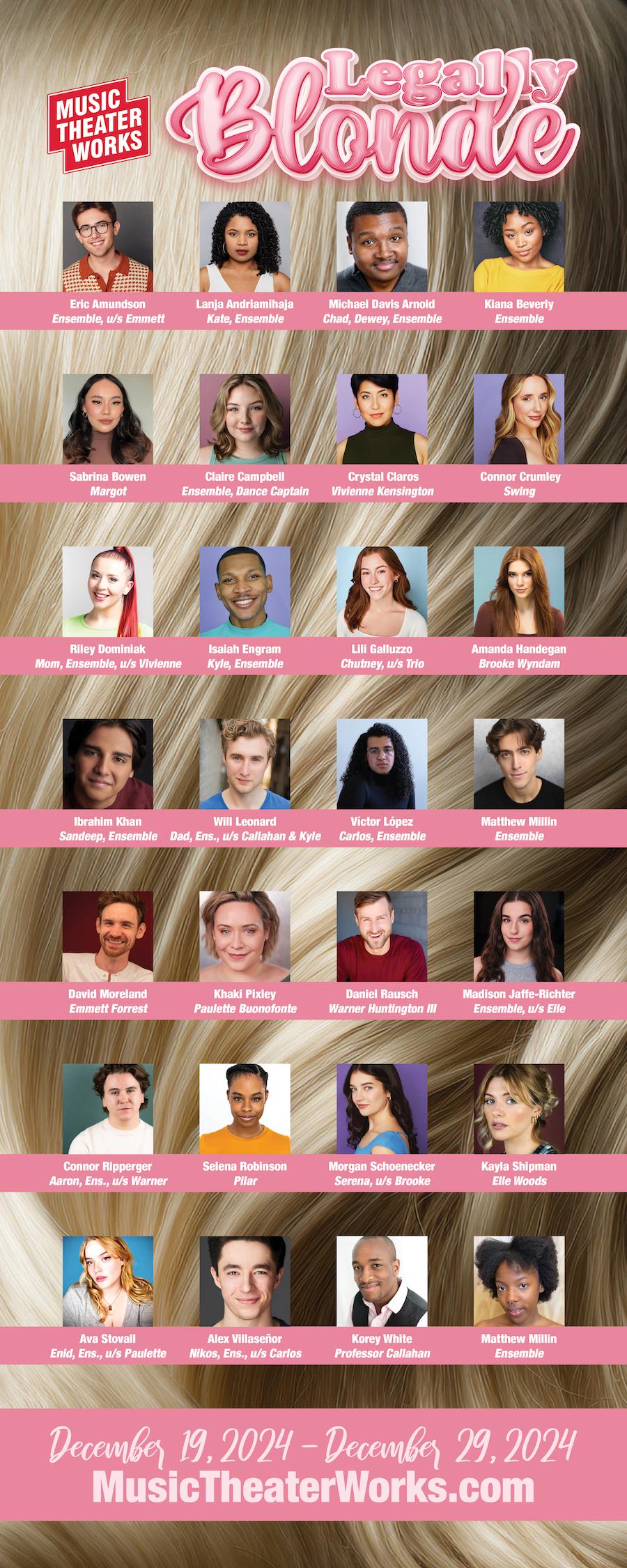 Music Theater Works is proud to announce the cast and creative team for the final production of its 2024 season, Legally Blonde: The Musical, in the Center Theatre at the North Shore Center for the Performing Arts in Skokie, 9501 Skokie Blvd, Skokie, December 19 - 29. Legally Blonde: The Musical, with music and lyrics by Laurence O’Keefe and Nell Benjamin and book by Heather Hach, is directed by Mandy Modic, choreographed by Mollyanne Nunn and music directed by Linda Madonia. The schedule includes a preview performance Thursday, Dec. 19 at 7:30 p.m. with a press opening Friday, Dec. 20 at 7 p.m. The performance schedule includes Fridays at 7:30 p.m., Saturdays at 2 p.m. and 7:30 p.m., Sundays at 2 p.m., with an additional performance on Thursday, Dec. 26 at 2 p.m. Tickets are now on sale from $19.50 to $106 with tickets for guests 25 years old and younger available at half-price at MusicTheaterWorks.com or by calling the Music Theater Works box office at the North Shore Center, 847.673.6300. Group discounts are also available for groups of 10 or more by contacting 847.920.5360.