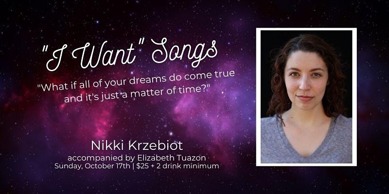 Nikki Krzeibot, a staff performer at Davenport’s, is thrilled to return to Davenport's cabaret for her third solo show, "I Want" Songs. Inspired by the idea of "asking for what you want and being prepared to get it," she'll take the audience on a journey through her own hypothetical future, setting up her dream roles, career aspirations and ideal relationships through song.