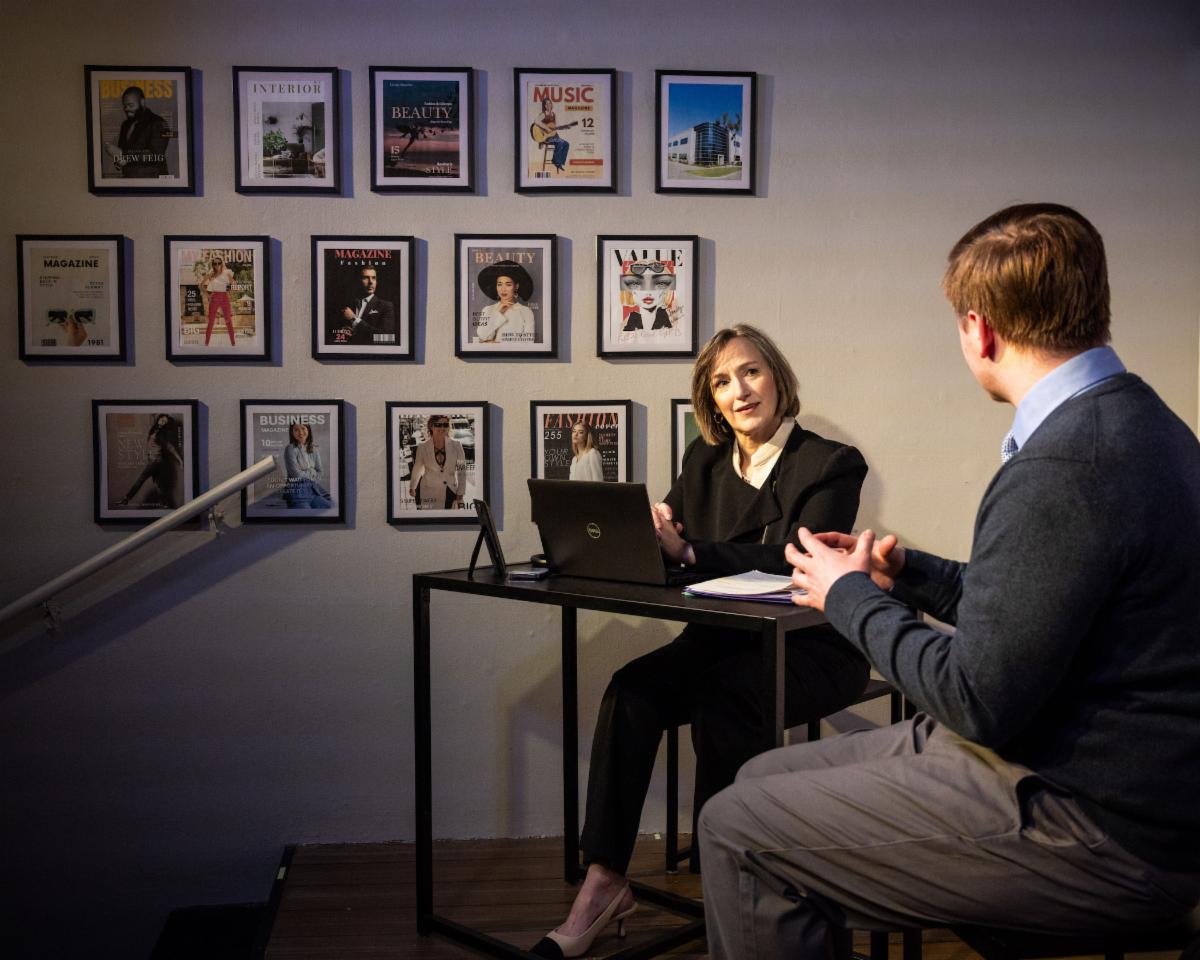 (L to R) Marianne Embree and James Wheeler in THE LIFESPAN OF A FACT from Oil Lamp Theater, now playing through April 13. Photo by Gosia Matuszewska - GosiaPhotography.com.