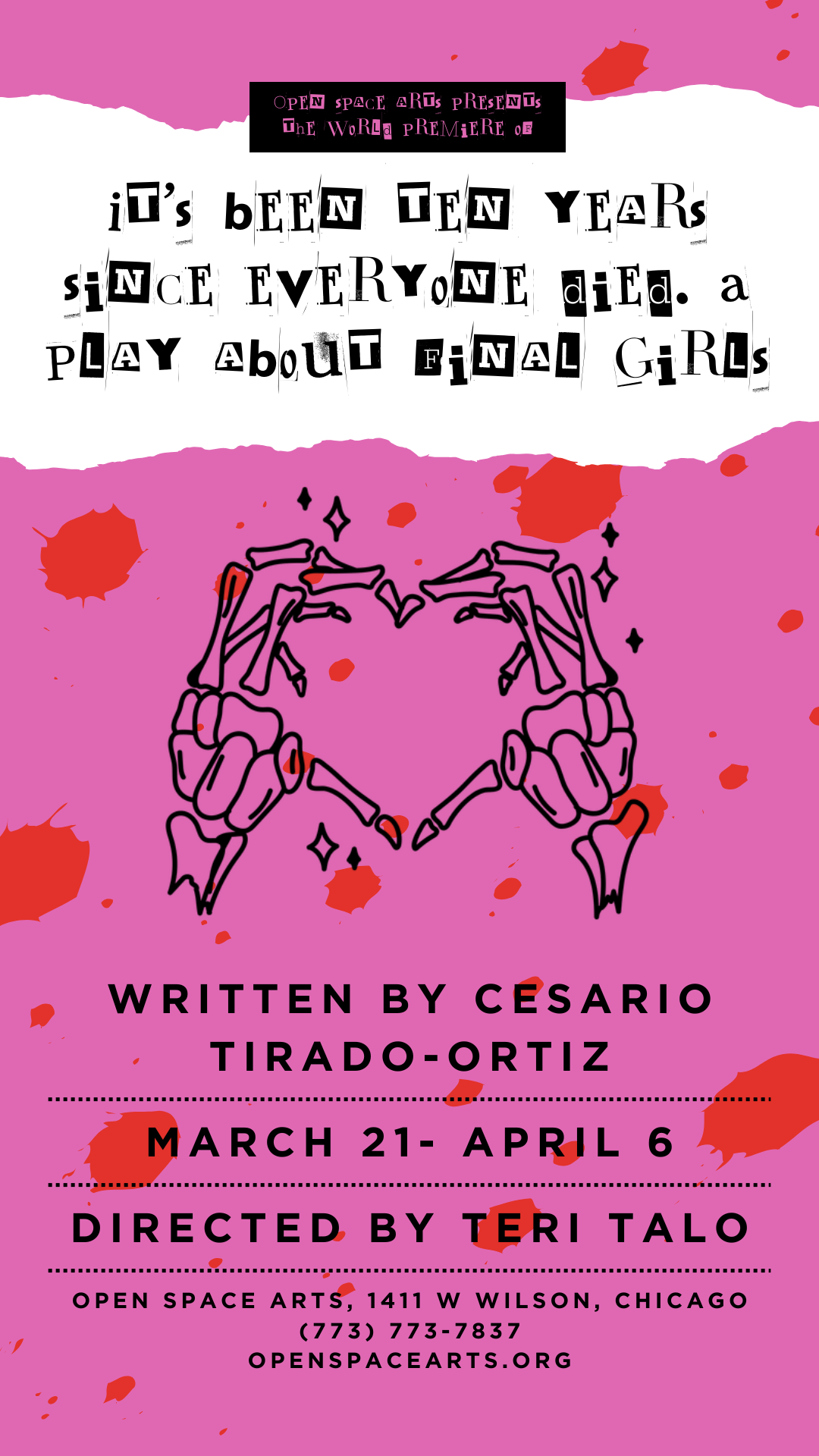 Open Space Arts today announced that it will stage the world premiere of “it’s been ten years since everyone died. a play about final girls,” a dark comedy/horror play about three survivors of an attempted attack by a group of cold-blooded killers. In this play by New York City based playwright Cesario Tirado Ortiz (they/he), three young people who were hunted down by the killers and against all odds survived, are forcibly reunited at a therapeutical retreat for women, to cope with their collective trauma. After a rainstorm prevents them from leaving the retreat, they find themselves again threatened by an unseen killer. This examination of the slasher final girl trope asks the question: Does all trauma affect us equally, and can we truly heal together?
