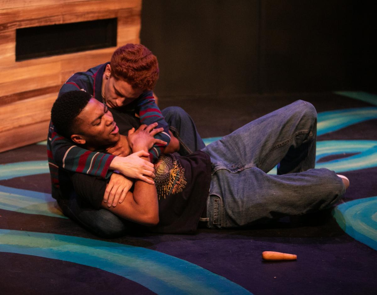 (L to R) Anthony Santiago and Gabriel Fries in TERMS AND CONDITIONS by Lucas Bigos, directed by ILesa Duncan as part of the 36th YOUNG PLAYWRIGHTS FESTIVAL by Pegasus Theatre Chicago now playing through January 28. Photo by Anthony Robert La Penna