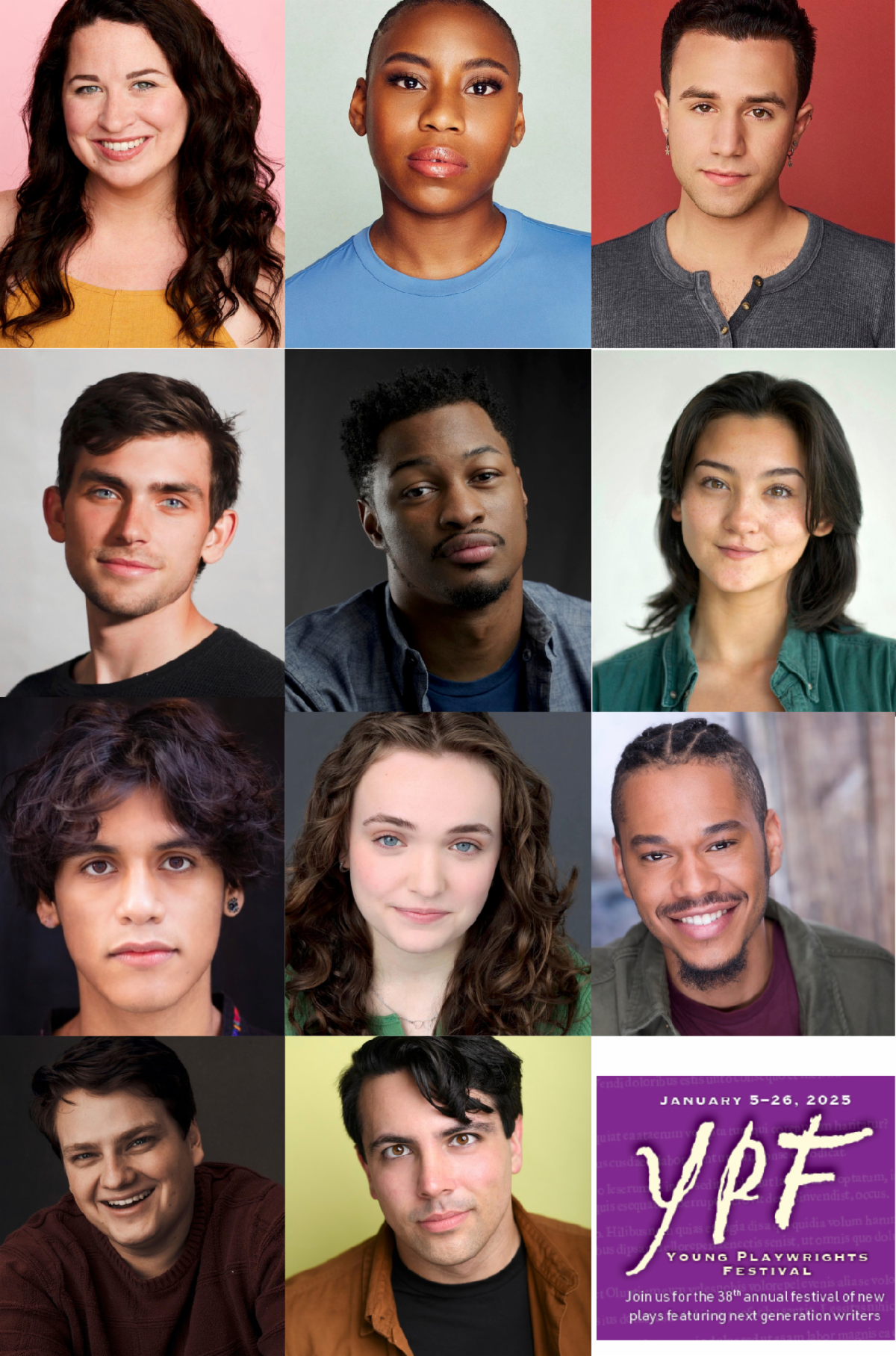 The 2025 Young Playwrights Festival Cast: Top Row: (L to R) Lexi Alioto, Shenise Brown, Collin Callahan Second Row: (L to R) Jacob Coggshall, Ben Izlar Jr, Noelle Oh Third Row: (L to R) Diego Rivera-Rodriguez with understudies Emma Fulmer, Lawrence Green Fourth Row: (L to R) Jake Jones and Benjamin Jouras